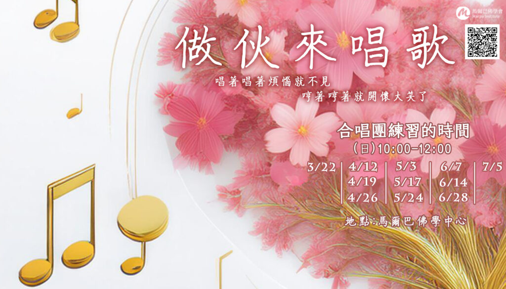 他是無方浪遊的修士,是梭巡虛空道上的導師,是飛越廣境的大瑜伽士。 尊貴的堪布竹清嘉措仁波切,1935年出生於藏東一個人人修行之地「囊千」。他是第十七世大寶法王噶瑪巴鄔金欽列多傑的上師之一,噶舉派大手印傳承持有者、瑜伽行成就者,同時也是當代著名的傳法上師與詩人。 閱讀更多 他的生活智慧,令現代心靈也能全盤享用佛法的豐饒滋味。 本樂仁波切在第十六世大寶法王噶瑪巴、怙主頂果欽哲仁波切及堪千創古仁波切、祖古烏金仁波切、阿拉生嘎仁波切等多位大師座下,領受了噶舉和寧瑪傳 承的教法和灌頂,並在他尊崇為「世界上最偉大的上師」堪布竹清嘉措仁波切 的指導下,洞見大手印心髓——自心本性,成為同時擁有大圓滿與大手印兩大傳承的偉大上師。 閱讀更多 看著外境,並沒有外境,只見到心看著心時,並沒有心,心的本性是空的看著兩者,二元執著自解脫了願我們了悟心的真實本性——明光節錄自2001年10月新加坡閉關,堪布仁波切以〈了義大手印祈願文〉第18偈帶禪修。譯師阿里金洲英譯。 當下,難忍的大悲心放射出無止盡的愛它的空性本質赤裸地閃耀著願我們永不離這殊勝無謬的雙運之道願我們日日夜夜禪修此法節錄自2001年10月新加坡閉關,堪布仁波切以〈了義大手印祈願文〉第23偈帶禪修。譯師阿里金洲英譯。 DOHA EVENT 3/11~9/2 佛法基礎入門班2「叛逆的佛陀」-通往自由之路|聽阿雅聊佛法🗒️上課時間:2026年3月11日-9月2日,每週三晚上19:30 -21:30💻上課方式:ZOOM線上授課🌞費用:免費參加 3/21 靜心工作坊「如果你覺得心累了,沒關係,來這裡坐一會兒。不用說清楚發生了什麼,也不用一個人撐著。我們在這裡,用安静的聲音陪着你。」帶領老師:張秦榮老師日期:3/21(星期六) 第一堂課 10:00-12:00 第二堂課 13:30-15:30現場上課:馬爾巴佛學會費用:免費參加 2026 年梵音合唱團招生囉~~唱歌,是給自己的溫柔練習每一個音符,都是心靈的自由舞動做伙來,來唱歌… 開懷的唱歌有益身心,歡迎大家一起來唱歌。指導老師:張聖潔老師練習日期:3/22,4/12,4/19,4/26,5/3,5/17,5/24,6/7,6/14,6/28,7/5上課時間:上午10:00-12:00現場上課:台灣馬爾巴佛學會 2026年1月7日~6月24日(每周三)馬爾巴佛學會《佛學入門班》🌸 你在煩惱什麼?也許,是生活的壓力、工作的疲憊、關係中的不安……當心越亂,越需要學習「靜下來」。馬爾巴佛學會《佛學入門班》,邀請你一同回到當下,從佛法中學會溫柔地看見煩惱、安住自己。 ✨光之舍利塔✨—師心長若天空,願心匯聚成塔—邀您共建 堪千竹清嘉措仁波切舍利塔 更多活動 CONTACT 連絡電話02-27600972 電子信箱marpa.center@gmail.com 聯絡地址台北市松山區基隆路一段10號16樓之一
